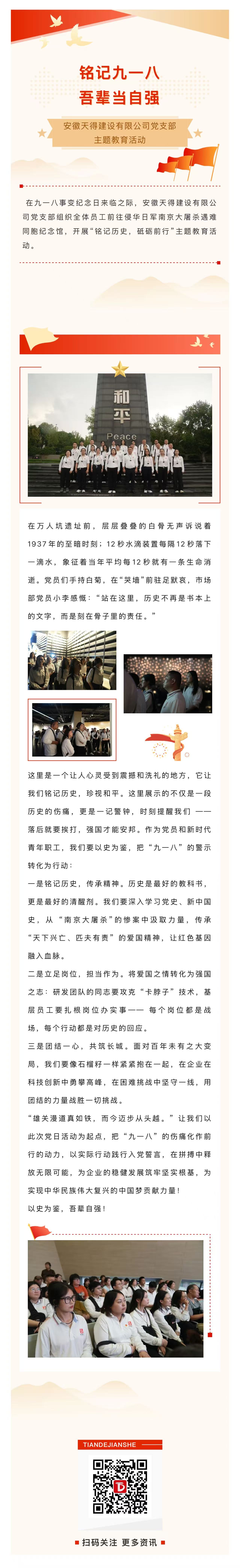 銘記九一八,吾輩當自強——安徽天得建設有限公司黨支部主題教育活動